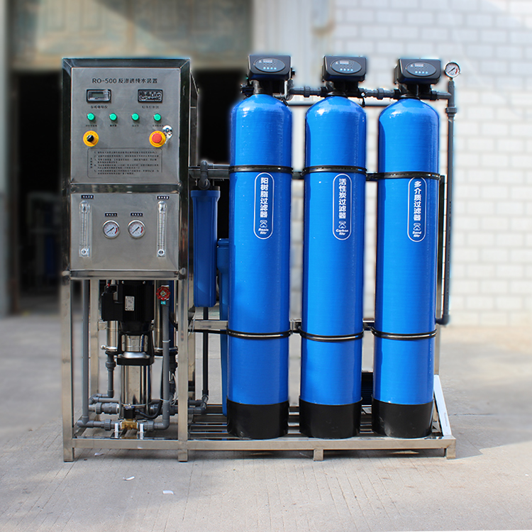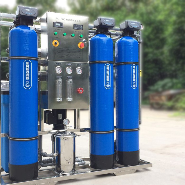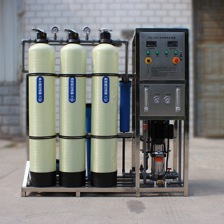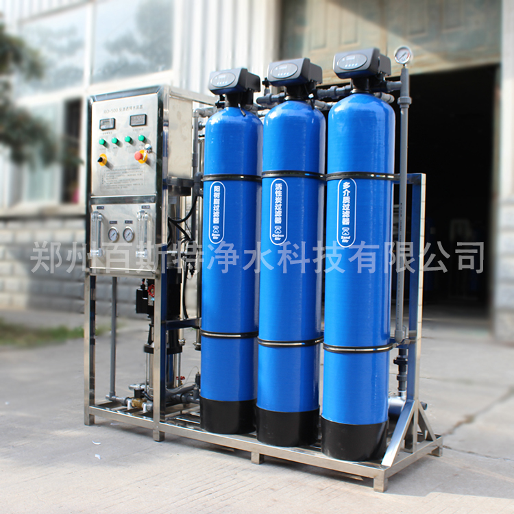 自來水/井水--原水箱--多介質過濾器--活性炭過濾器--軟化過濾器/加藥裝置--保安過濾器--高壓泵--反滲透部分--純水箱--用水點