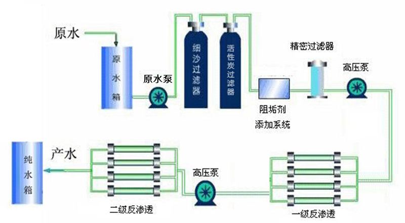 反滲透系統原水箱、原水泵、進水閥、低壓開關、高壓開關、高壓泵等關鍵元件的主要作用